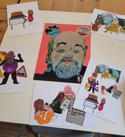 Working with Mark to produce all this creativity has been a really wonderful addition to the ADAPT project, I am excited for the exhibition. I love the energy in Mark’s drawings, the way he can bring such powerful messages to life in a way that really appeals to other people who have had a stroke is just brilliant.